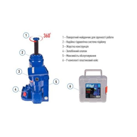 Vitol Iron HAND - це обмежена лінійка домкратів, виділена в окремий бренд та об'єднана однією загальною рисою - вигідна ціна при збереженні високої якості. Придбавши телескопічний гідравлічний домкрат IH-148276D-K, ви будете готові до будь-яких викликів, які може кинути вам автомобільне життя.
