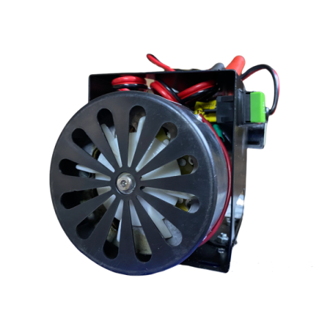 Насос работает от АКБ 12 В, имеет номинальную продуктивность на уровне 64 л/мин. Максимальная производительность достигает 70 л/мин. Мощность двигателя составляет 600 Вт. Мотор оснащен системой принудительного охлаждения, благодаря чему он может работать без остановок в течение 120 мин. Двигатель укомплектован удлиненными щетками, конденсатором. Количество оборотов пониженное – 2800 вместо 3500 у обычных моторов.