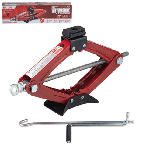 Ромбічний домкрат «Штурмовик» BBC-1200 призначений для підйому легкових автомобілів вагою до 1,2 тонни. Компактна конструкція, невелика вага (всього 2,2 кг) та зручна форма забезпечують простоту використання та зберігання. Висота підйому до 350 мм дозволить легко замінити колесо або провести дрібний ремонт у дорозі. Виготовлений із міцного металу, гарантує надійність і довговічність.