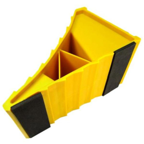 Упор под колесо ST-002 выполнен из желтого пластика. Наличие ребер жесткости делает урор ST-002 сравнимым по прочности с аналогами выполненными из металла.