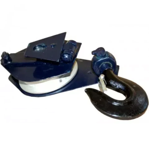 Дане такелажне пристосування може бути конструкційної частиною різних пристроїв: починаючи від поліспастів, закінчуючи – вантажопідйомними (тяговими) механізмами з електричним і ручним приводом. Його комплектація досить проста і складається з відкидної щоки, обертового шківа з підшипником і гака із запобіжником.