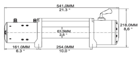 Лебідка обладнана сталевим гальванізованим тросом і надійним гаком для фіксації об'єктів. Надійна 3-х етапна коробка передач планетарного типу, забезпечить комфортну і швидку намотування. Автоматична гальмівна система "Eccentric Block Type", яка знаходиться в барабані, не дасть тросу зірватися. Новий електромотор Series Wound розвіває 5 к.с. і тягового зусилля до 5 т. Підключається проводами живлення до 24 В акумулятора. Управління здійснюється за допомогою дистанційного пульта диною 3.7 м.