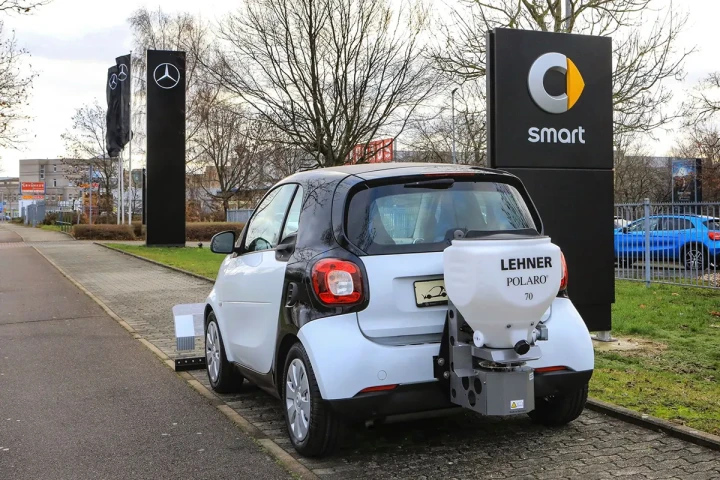 Все монтажные отверстия, необходимые для крепления, находятся в раме. Ширину разбрасывания можно плавно регулировать от 0,8 м (тротуар) до 6 м (например, стоянка) при движении благодаря плавной регулировке скорости разбрасывающего диска на панели управления. Количество усыпанного материала можно устанавливать вручную.