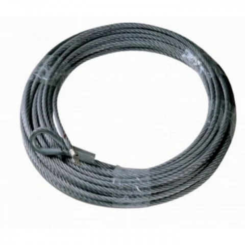 На одному кінці троса розташований коннектор для з'єднання з барабаном, а з іншого розташовується петля для фіксації. Багаторядне плетіння забезпечує сталевим волокнам ще більшу міцність. Всім відомо, що металеві троси схильні до утворення задирок і задирок. У представленій моделі ця особливість зведена до мінімуму, завдяки продуманому плетіння.